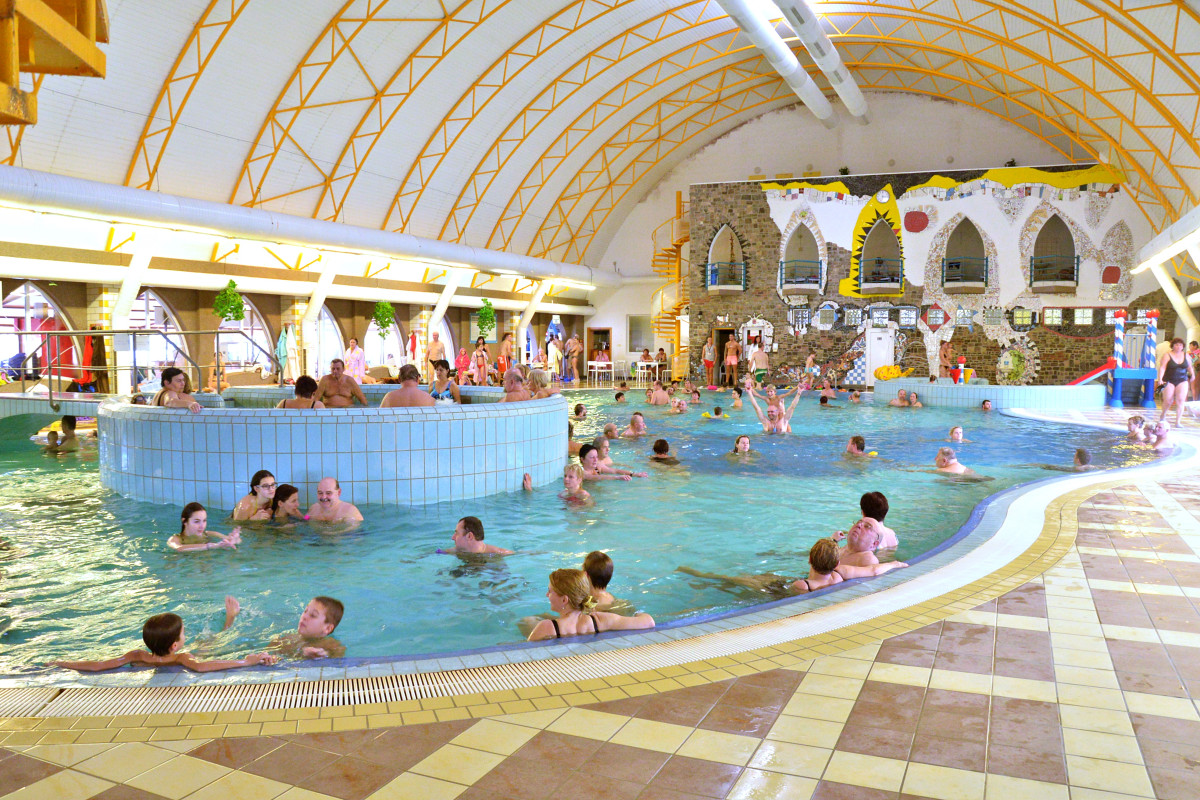 Thermal Corvinus - oblíbené slovenské termální lázně v nádherném lesoparku. Rozsáhlý a moderní rekreační komplex nabízí 13 bazénů s termální léčivou vodou. Osm z nich je v provozu celoročně a vyblázní se v nich malí i velcí návštěvníci. Na děti tu čeká zábavní i dětský bazén a k tomu řada celoročně dostupných tobogánů. Vy si můžete dopřát oddych v perličkovém bazénu, krytém i polokrytém sedacím bazénu, anebo v relaxačním bazénu. Odpočinek můžete střídat s aktivním plaváním v plaveckém bazénu. V létě jsou k dispozici také venkovní bazény - plavecký, italský či skokanský bazén, 2 dětské bazény a další tobogány. Milovníky pravé letní pohody nadchne bazén s vlnobitím a proudová řeka. Ve všech 13 bazénech je termální voda s teplotou 25-38 °C, která má blahodárné účinky na pohybové ústrojí, páteř a svalstvo a má regenerační účinky na lidský organismus. Navštívit tu můžete také Saunový svět s 5 druhy saun, kde se pravidelně konají i rituály. K dispozici jsou také restaurace a bary.